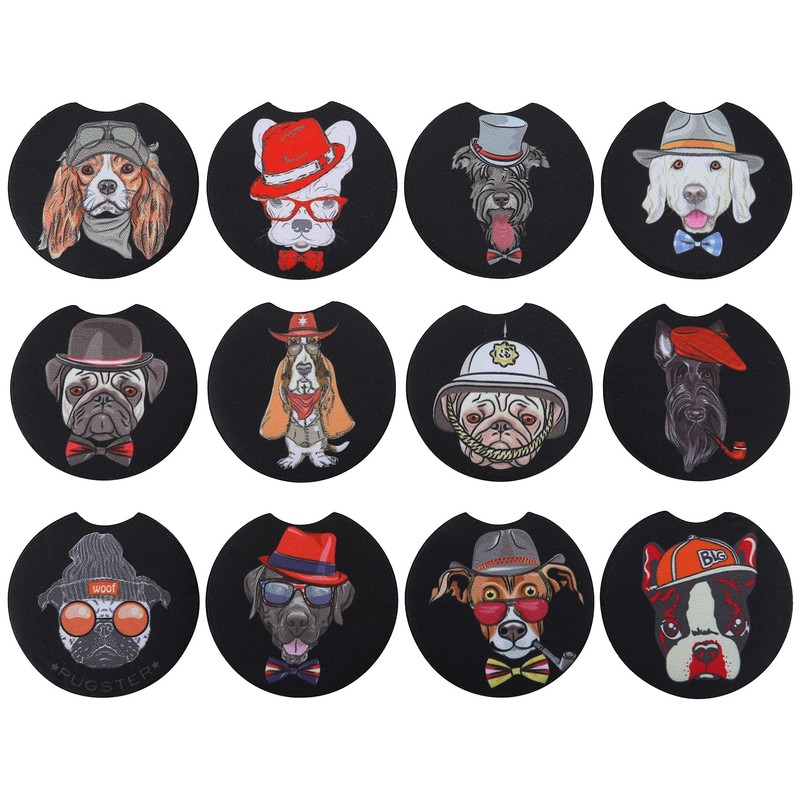 FUN LAVIE Car Coaster 12 Pack Car Cup Holder Coaster Set for Drinks Absorbent Keep Clean Auto Accessories Hat Dog Series