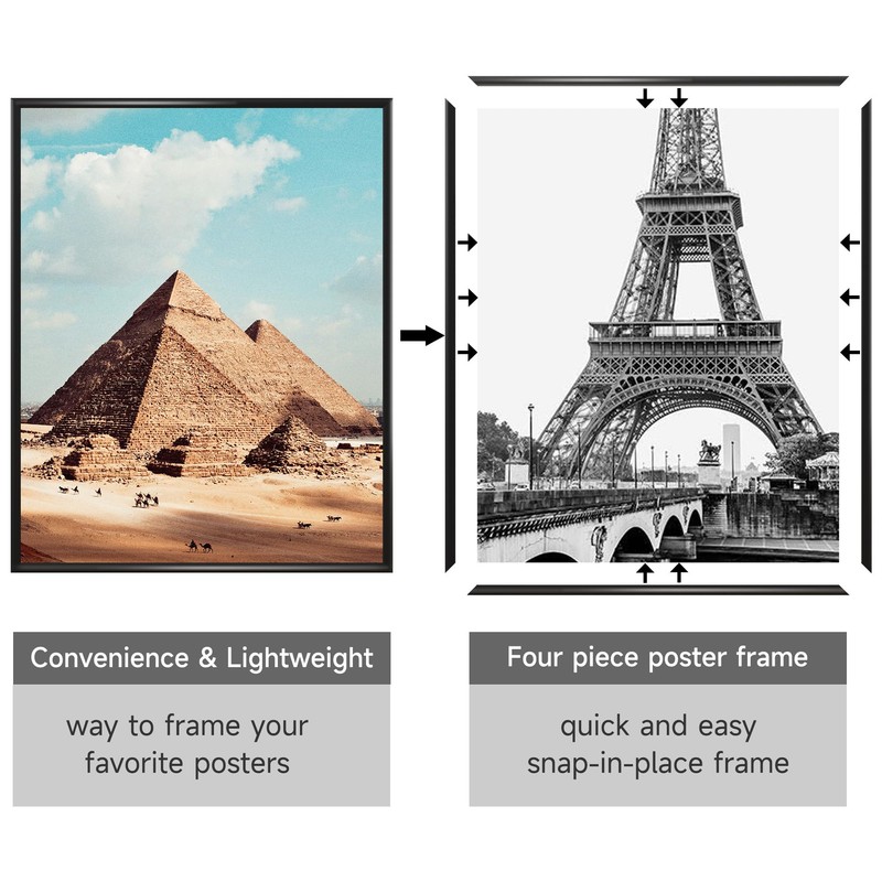 - Easy to Install:These frames are lightweight and easy to install. 4 framing strips slide together for easy installation, and the back comes with 2 sturdy hooks to hang vertically or horizontally on the wall, perfect for blending into any space or theme.