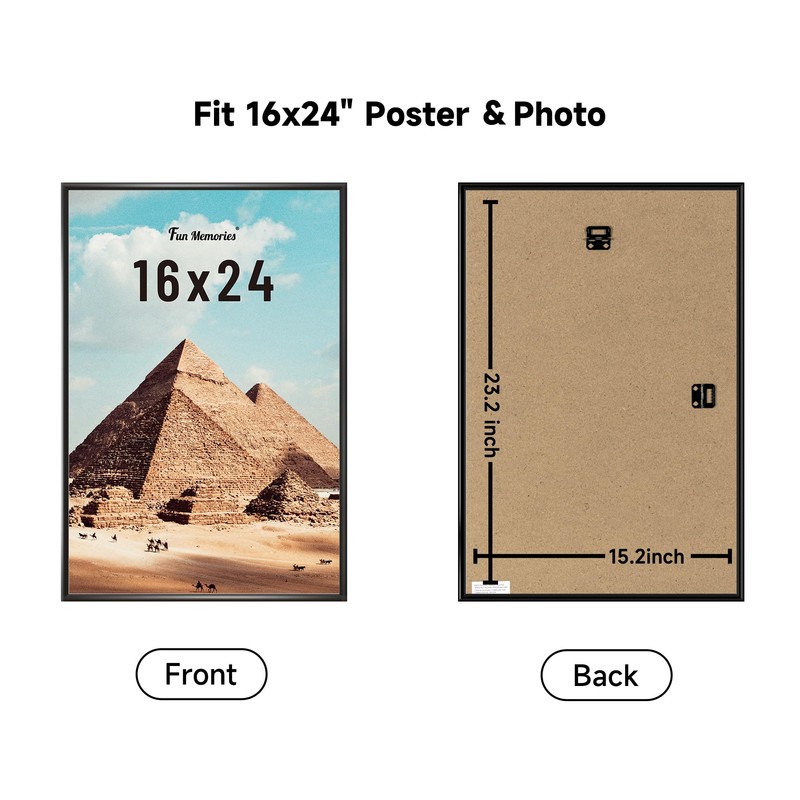 Fun Memories 16x24 Poster Frame for Photo, Posters & Art Prints, Horizontal or Vertical Wall Mounting Scratch-Proof Wall Gallery Photo Frame (Black, 3 Pack)