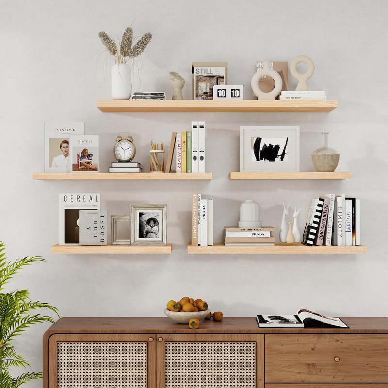 - Excellent Storage & Décor - Each board measures 24"L x 9.3"W x 1.2"H, hold up to 50 lb. This floating shelf taking up zero square feet, reduces clutter and highlights décor in compact spaces. It can help make full use of the empty wall, which is much more space-saving and makes your room look larger and tidier.