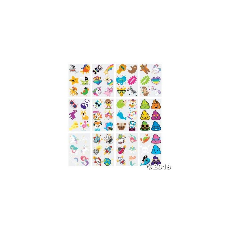 - Poop to pandas to pizza it’s all right here. A great addition to party favors giveaways carnival prizes classroom rewards and more this huge assortment of temporary tattoos features fun and trendy designs including animals smiling food rainbows and more. If you’re hosting a birthday bash you could even sprinkle these on your tables for fun party décor kids can wear. Truly the options are endless with an assortment filled with this much fun. Easy to apply and remove. Safe and non-toxic. Paper. (
