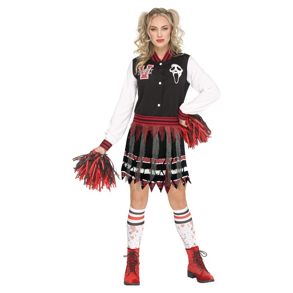 • Dress up this Halloween in the officially licensed Scream for the Team cheerleader costume featuring Ghost Face from the movie Ghost Face Lives! Coordinate with the whole family.