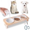 - 【Premium Solid Wooden Cat Bowl with Stand】 Raised Pet Food Bowls crafted from high-quality ceramic, this pet food dish is chip-resistant and free of harmful chemicals.Made of natural wood, the cat bowl board is anti-deformation and free from odor. Its smooth, glazed surface ensures easy cleaning and prevents bacterial buildup. The sturdy base keeps the bowl steady during mealtime (NOTE: ceramic dishes may break if dropped, so handle with care and avoid sudden impacts)
