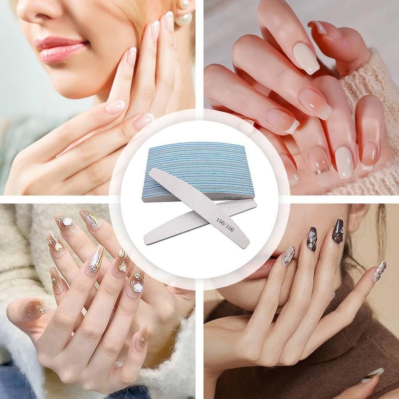 Features: Doppelseitiges Halbmond-Design, waschbar, langlebig, verformungsbeständig, wiederverwendbar und leicht zu tragen. Dies ist ein ausgezeichnetes professionelles Nagelfeilen-Set Werkzeug, das Sie, Ihre Familie und Freunde mit einem komfortablen und angenehmen Maniküre-Erlebnis jederzeit zur Verfügung stellen kann!