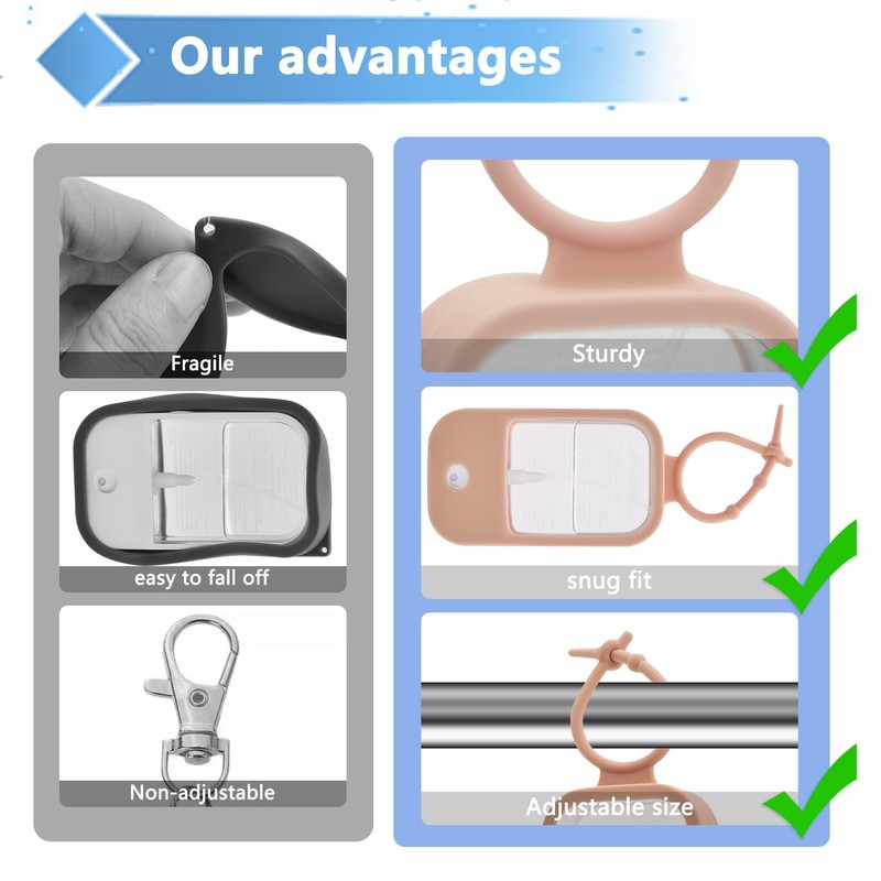 - Durable & Premium Quality The hand sanitizer spray case is made of premium silicone material, odorless, safety, lightweight, durable, and reusable. The silicone keychain can hold the sanitizer bottle tightly in place so it won't fall off