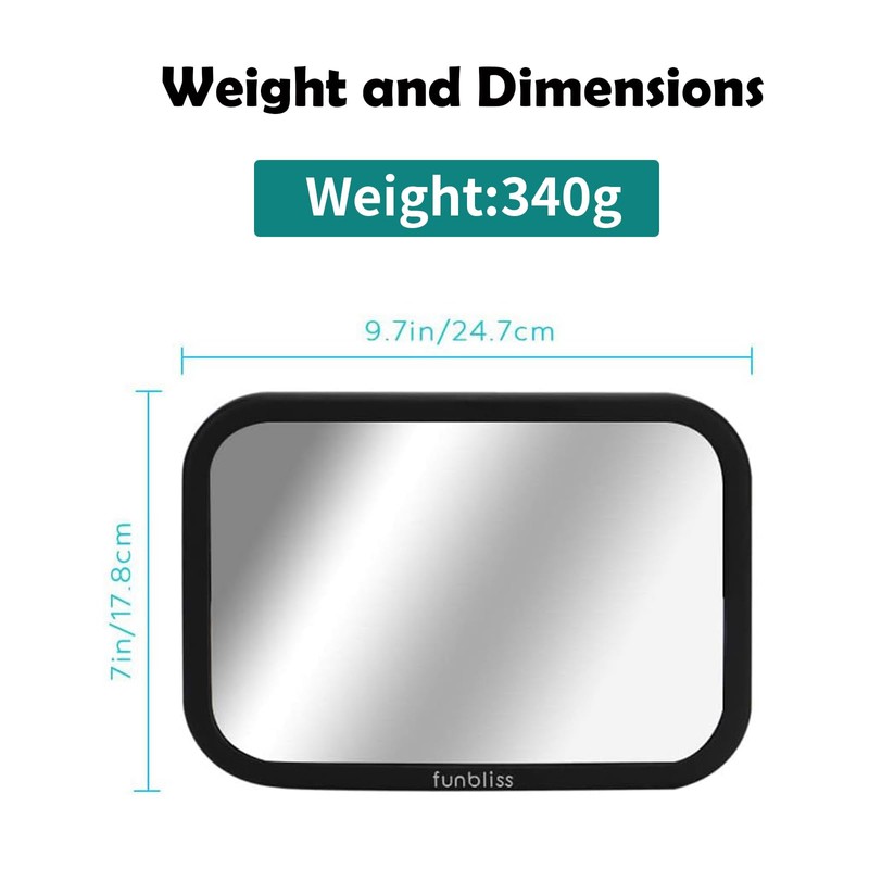 Funbliss Baby Car Mirror for Rear Facing Seat,360° Rotation, Safety Certified Shatterproof Acrylic Glass, Clear Wide View,Infant Mirror for Car Seat Rear Facing