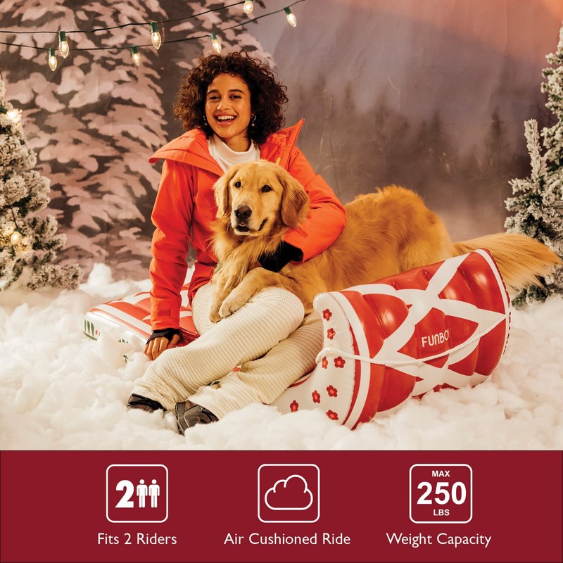 - SNOW FUN WITH FAMILY AND FRIENDS: Holds up to 2 riders or 250 pounds. Comfortable air-cushioned ride and durable construction pioneered by FUNBOY, the leader in inflatable design.