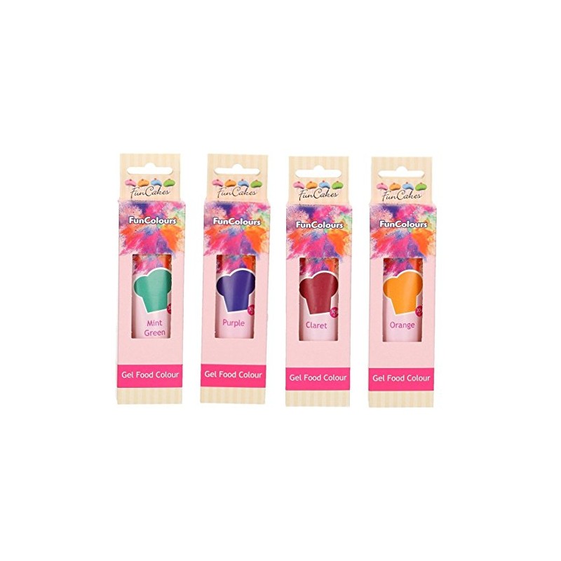 FunCakes - High-Quality Food Colouring - Set of 4 (120 g) - Orange, Purple, Red Brown, Mint