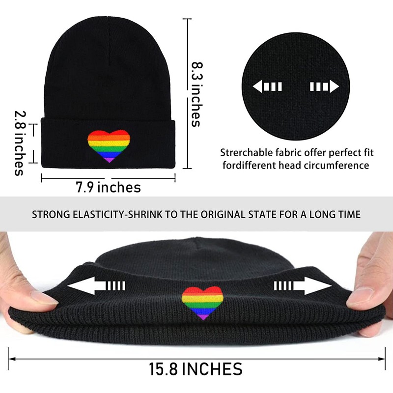 FUNCOOLCY Rainbow Heart Soft Slouchy Beanie Hat,Winter Warm Knit Cuffed Skull Cap for Men Women