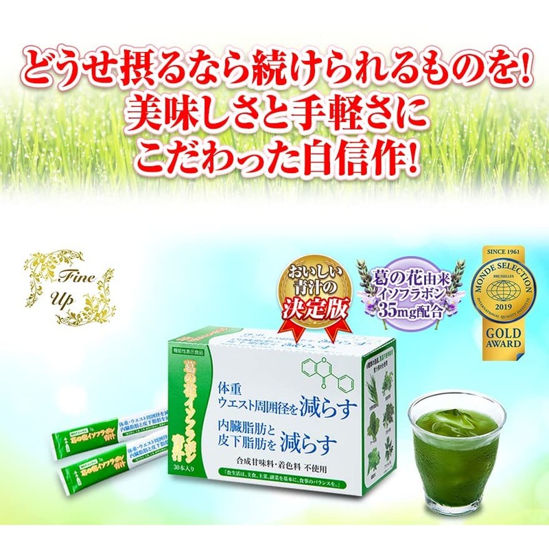 Functional Display Food Fine Up Kuzu Flower Isoflavone Green Juice, 1 Box of 90 mg (0.1 oz (3 g) x 30 Bottles), Delicious Green Juice, Powder, Diet