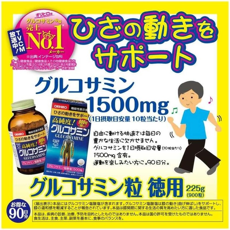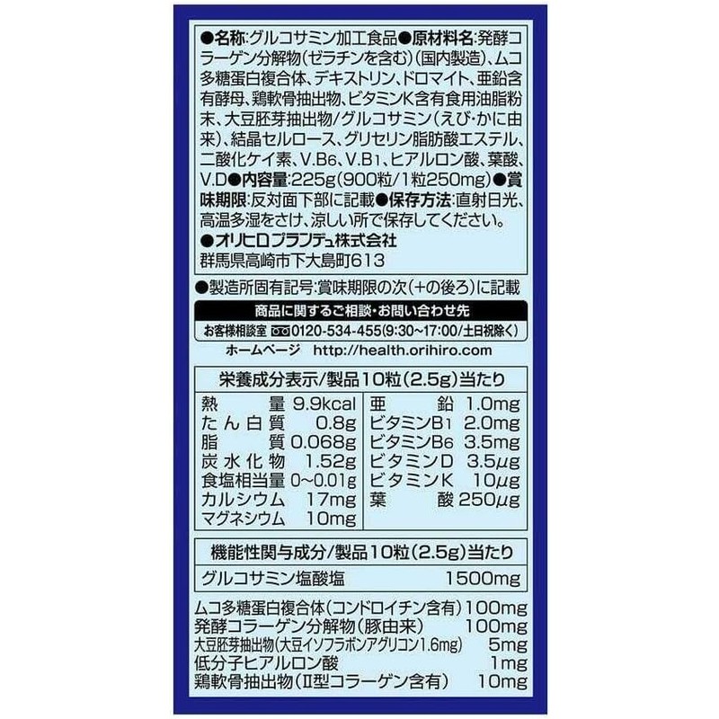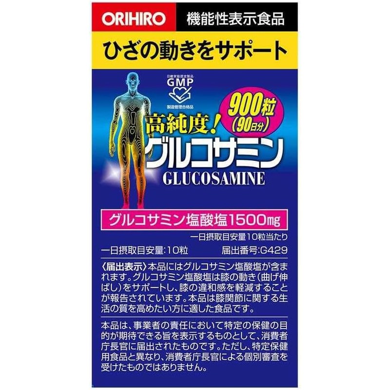 [Functional Food] Orihiro High-Purity Glucosamine Tablets, Value Pack, 900 Tablets (Set of 2)