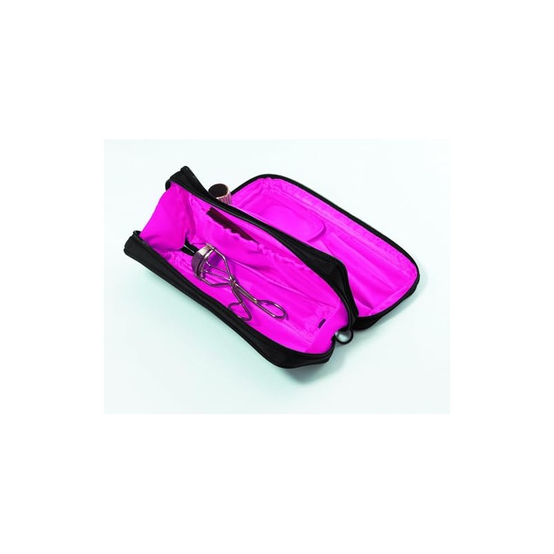 - (Large divider pockets). Functional makeup pouch with brush holder