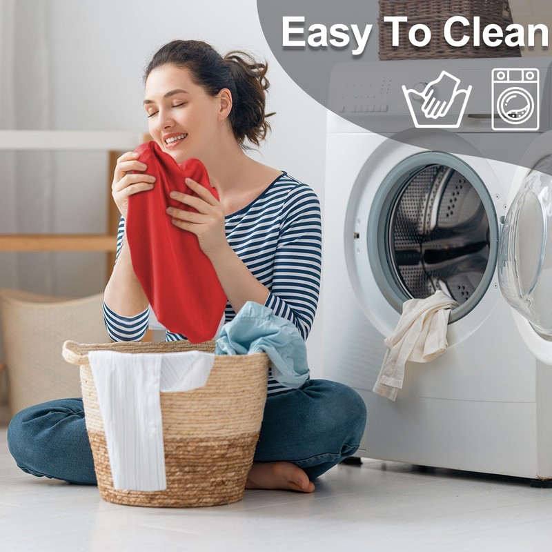 - Cuidado fácil: lavable a máquina en agua fría con detergente suave. No usar blanqueador ni planchar.