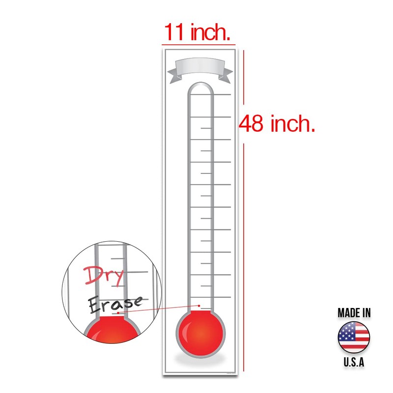 - PERFECT FOR ANYONE - This giant erasable custom dry-erase fundraiser thermometer can be used by anyone, from small kids to adults. Our blank charts can also be used by an individual, team, family, club, and more. Easy and stress free to use; just write & wipe. Reach your goals and reward yourself with prizes, games, toys, a big bonus, or even a vacation trip!