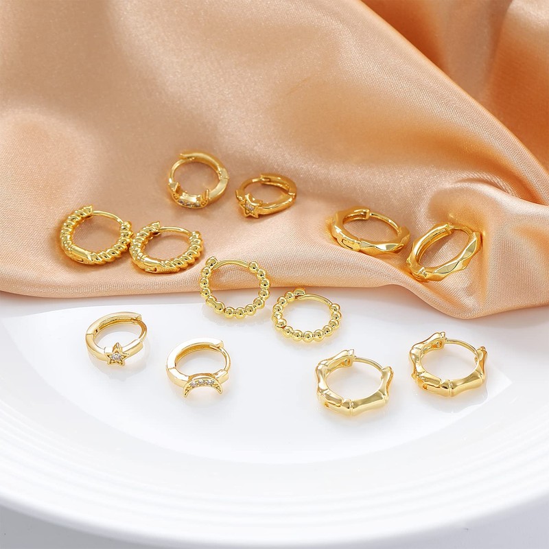 FUNEIA 6-9 Pairs Small Hoop Earrings Gold Women's 14K Gold-Plated Earrings Set Mini Hoop Earrings Gold Nickel Free Hypoallergenic Twisted Cartilage Hoop Earrings with AAA Zirconia Jewellery Set, Brass