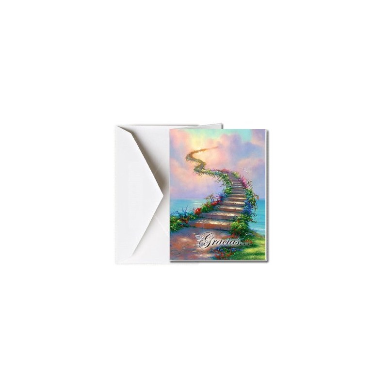 Funeral Memorial Service Thank You Cards with Envelopes (25 Count) FTKC1009 Stairs to Heaven (Family Name Custom Printed - Enter Family Name)