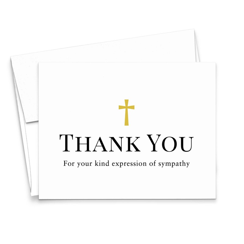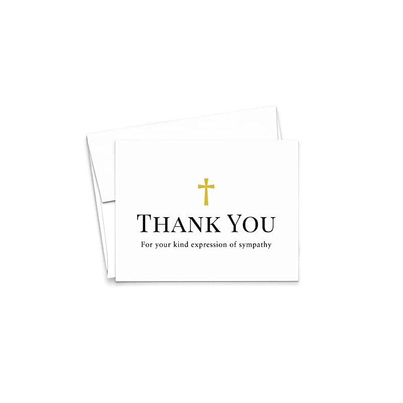 Funeral Sympathy Thank You Cards with Message, (FOLDED, Blank Inside), Funeral Folded Thank You Notes with Envelopes, Memorial Cards, Your Choice of Quantity and Envelope Color