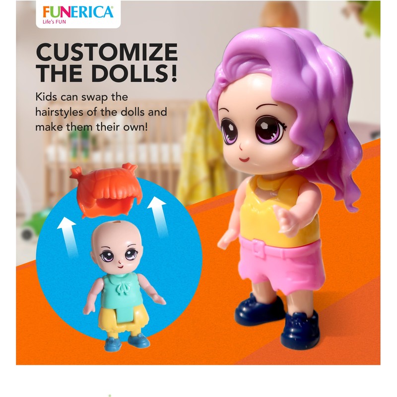 - CUTE AND CUSTOMIZABLE: The adorable dollhouse people figures have detailed features, and you can swap their hairstyles to customize them and make them your own! Ideal for kids and toddler doll house.