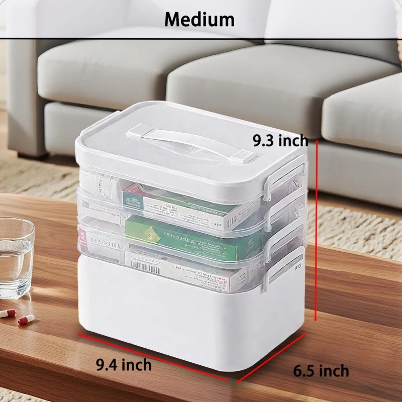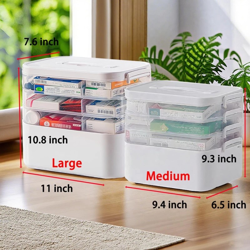 【 4-Tier Large Capacity Design】Upgraded to a 3-tier individual organizer, this medication organizer has a larger capacity to efficiently store pills, bottles, first aid kits and medical tools. The taller dimensions keep supplies neatly categorized and readily accessible at home, while traveling, or in emergencies