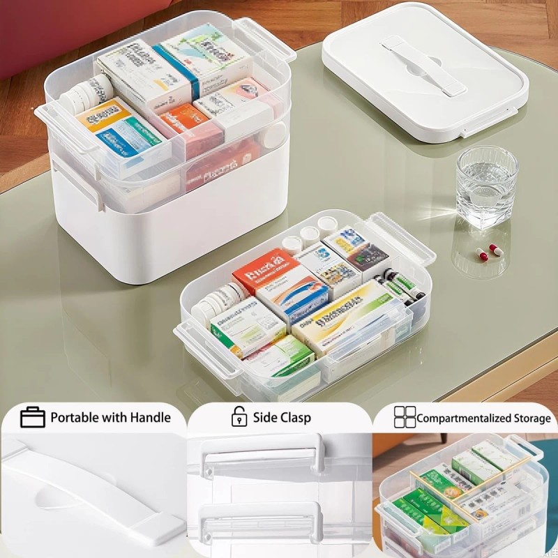 【 Ergonomic Portability 】 The handle feels comfortable to hold and is easy to carry. The box buckle is reinforced, but it is not difficult to open. Just give it a gentle push and it can be opened. The transparent and intuitive design of the plastic medicine storage box enables you to quickly locate the medicine you need