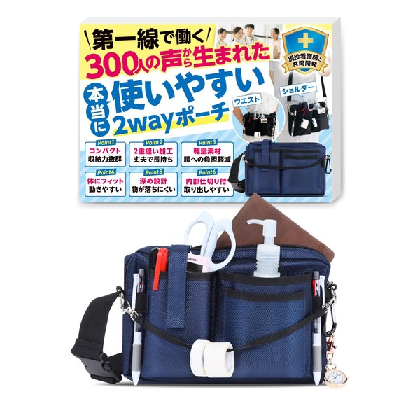 FUNFOUND Nurse Pouch, Co-developed with Active Nurses, Waist Pouch, Nurse Pouch, For Work, 2-Way Specifications, Lightweight, Unisex (Blue)