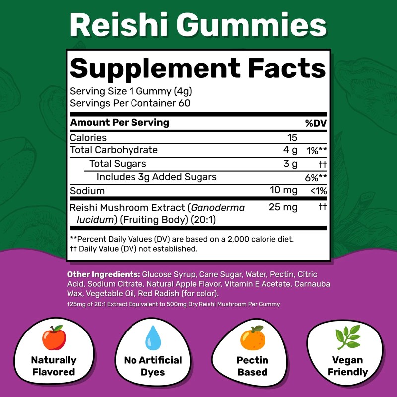 • REISHI MUSHROOM GUMMIES FOR EVERY LIFESTYLE — These mushroom gummies for adults are crafted in an FDA-registered and cGMP-certified facility, ensuring the highest standards of production. Tailored for health-conscious individuals, our mushroom gummies for adults and children are vegan-friendly, non-GMO, and pectin-based, making them an excellent choice for anyone looking to support their wellness with a trustworthy and effective daily mushroom gummy supplement.*