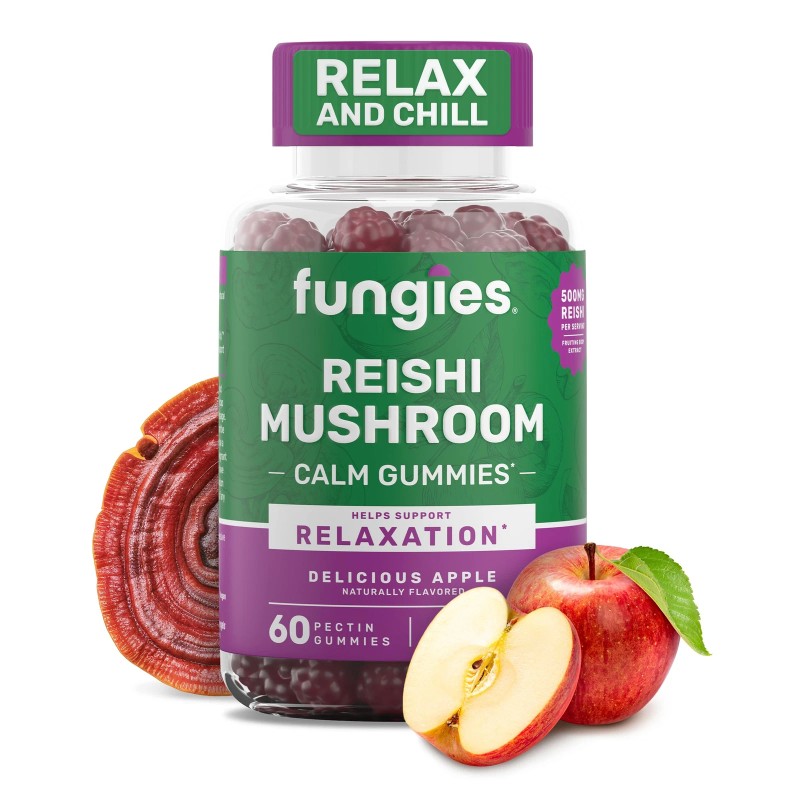 Fungies Reishi Mushroom Gummies 60 Count Daily Calm and Stress Relief Apple F...
