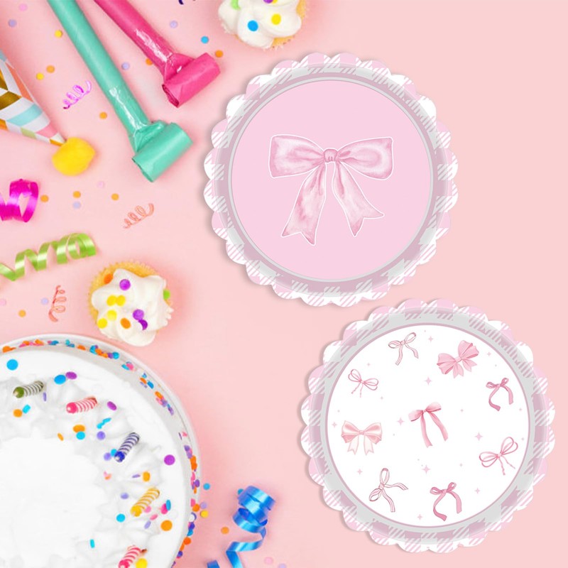 - Save Time: no cleaning required! Pink birthday decorations save you the hassle of cleaning, you just throw scalloped paper plates into the trash after the party, enjoy more time with friends and family at this bow party