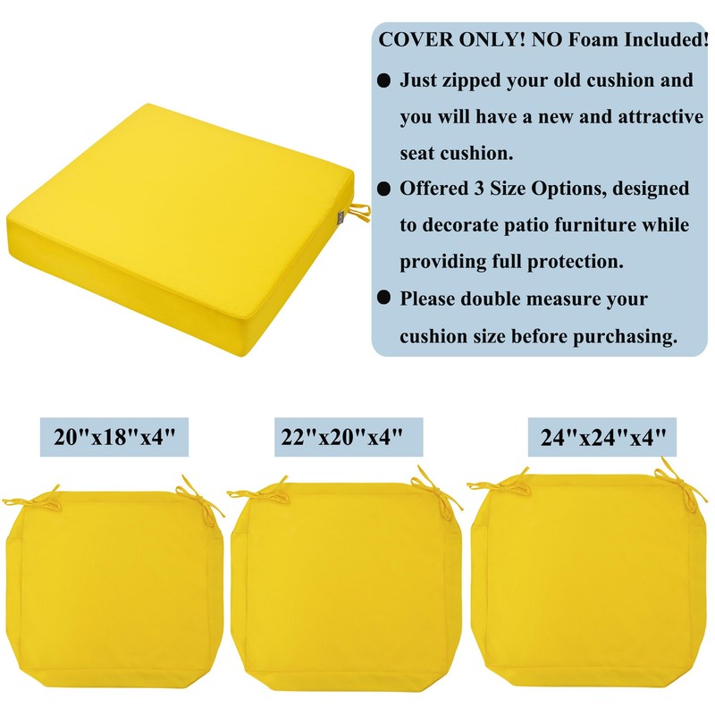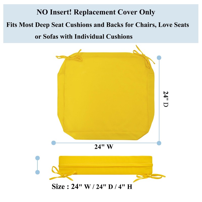 FUNHOME 2 Pack Outdoor Cushion Slipcovers 24" x 24" x 4", No Insert! Water-Resistant Patio Chair Seat Cushion Covers with Zipper and Tie, Replacement Cover Only(Yellow)