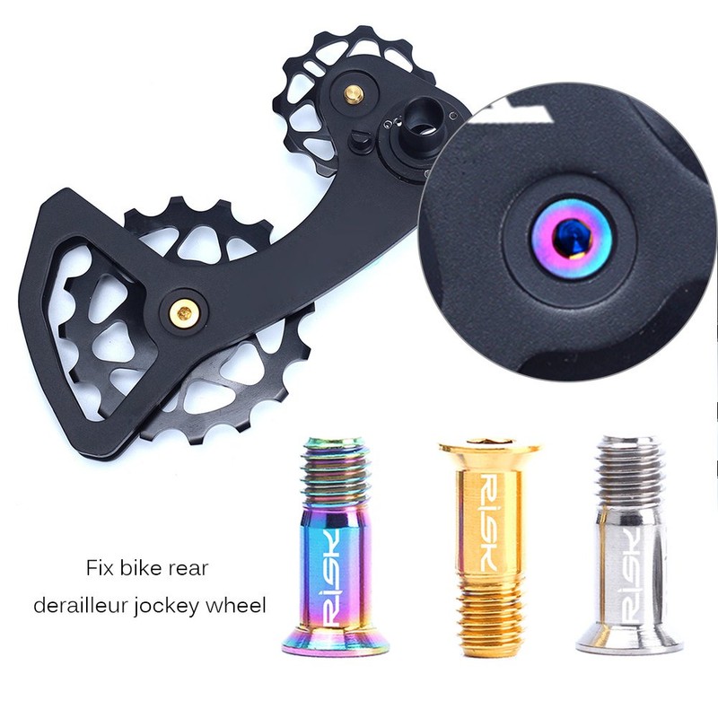 Funien 2pcs Titanium Bicycle Rear Derailleur Jockey Wheel Screw for MTB Road Bike M5 × 14.2 mm Bicycle Guide Roller Bolt Screw Ti Screws