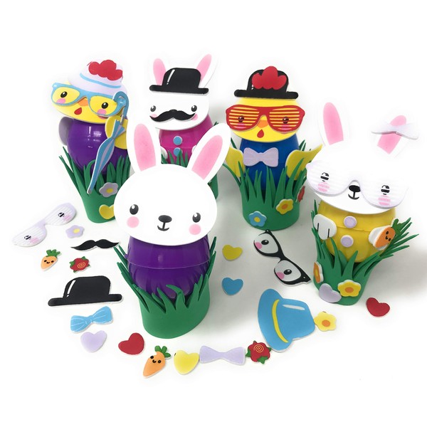 - 18 Kits to make your custom Easter Bunny or Easter Chick (9 of each style in each pack) - Plenty of fun pieces to make that special decoration - Add a mustache, clown nose, bowler hat, umbrella, sunglasses and more - Make thousands of designs mixing and matching pieces any way that you like