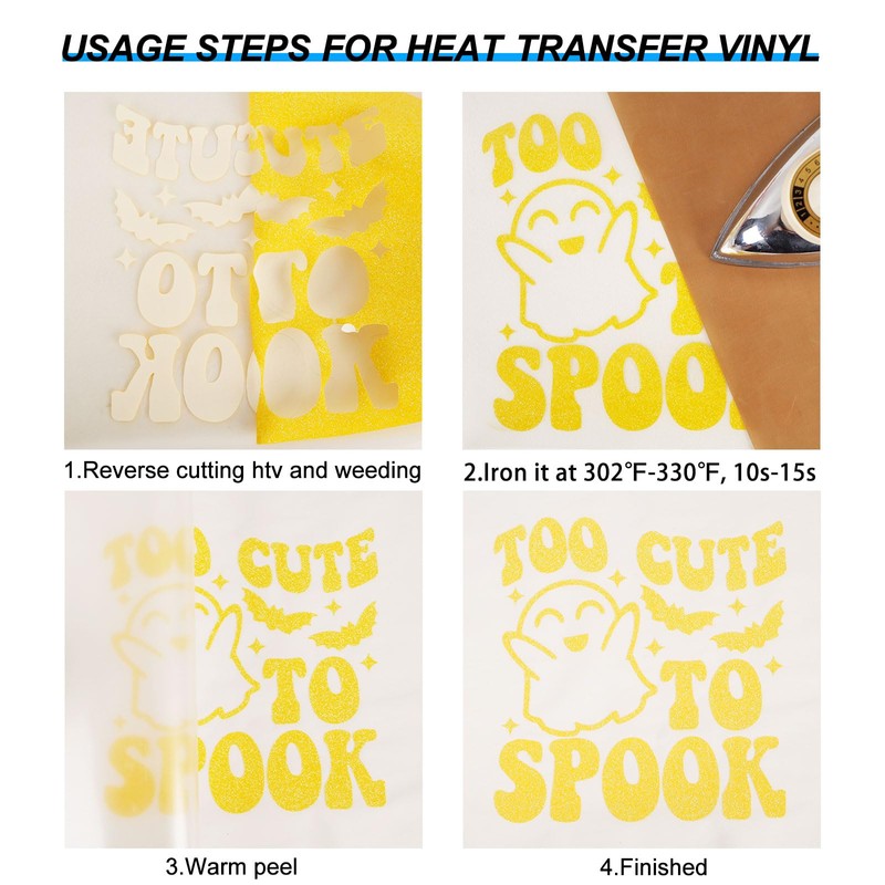 - ✂️【EASY TO CUT & WEED & TRANSFER】Our Luminous Gold Glitter Iron on Vinyl rolls is sensitive to temperature and pressure, which can be quickly and easily to weed and peel. It is compatible with all cutter machines, most heat presses and household irons on the market, and perfect for 12x12" and 12x24" cutting mats. You can easily apply adhesive backing HTV to fabric using a hot iron or hot press. Please note that it is Warm peel.