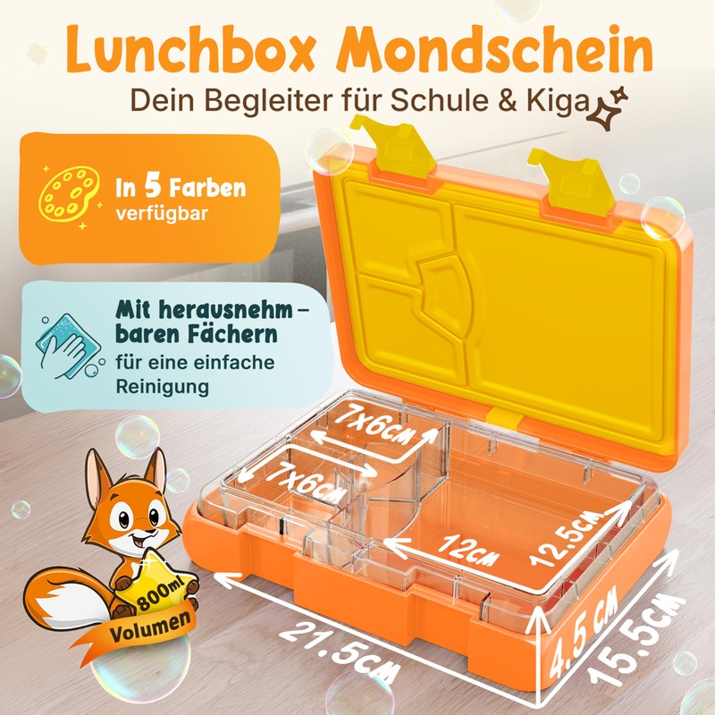Funkelfuchs® - Children's Lunch Box with Compartments - 800 ml Orange - Moonlight Lunch Box Large - Snack Box, Lunch Box, Lunch Box, Lunch Box, Lunch Box, Bento Box Children - for School, Nursery and