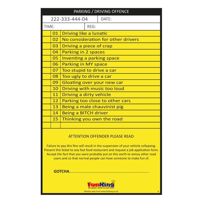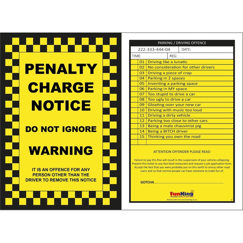 Funking Bringing A Smile To Your Face 10 x Fake Joke Prank Parking Tickets. Pack Of Ten