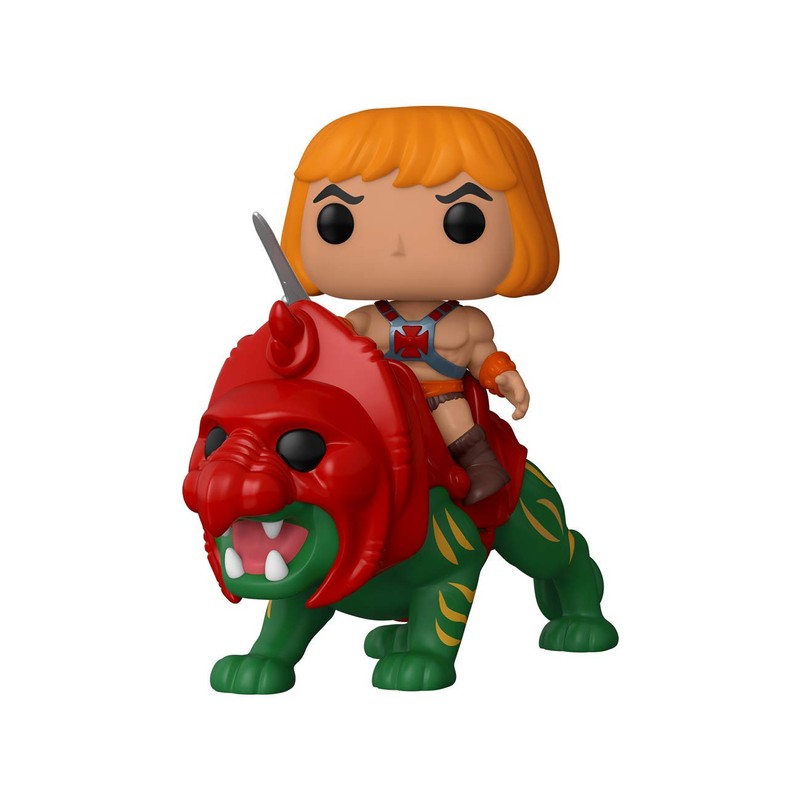 - From Masters of the Universe, it’s He-Man on Battle Cat as a stylized Funko Pop! Ride vinyl figure.