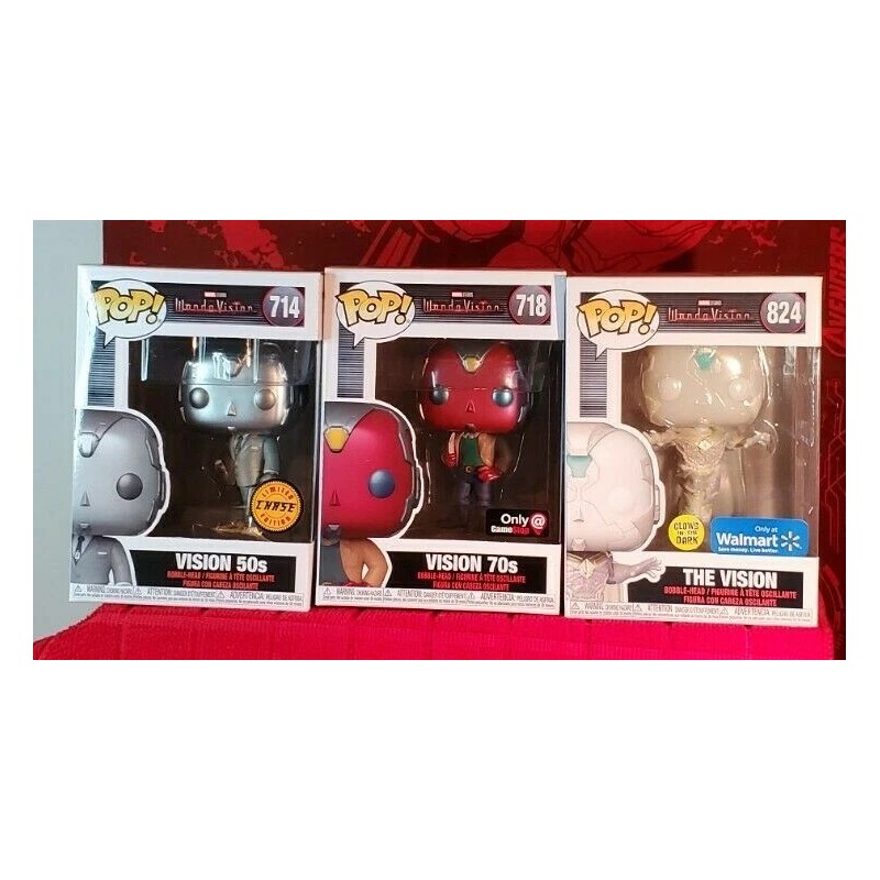 Funko Pop! WandaVision Vision #714 (Chase) , Vision #718 (70s), Vision #824 GITD