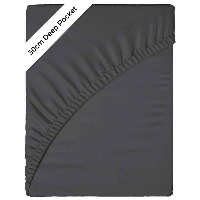 Funky Gadgets Fitted Sheets King Size Deep Pocket 12 Inch (30cm) 90 GSM Soft Brushed Microfiber Bed Sheets Easy Care Bottom Sheet Charcoal (152 X 200cm)