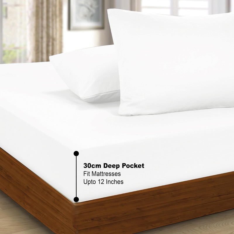 Funky Gadgets Polyester Brushed Microfiber Super Soft Breathable Fitted Sheet 30cm Deep Pockets Close Fit Sheet Easy Care Plain Single Duvet Cover Set White