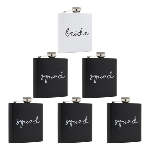 Funky Junque Flask Bundle - 1 Bride (White) & 5 Squad (Black) - 6 Pack