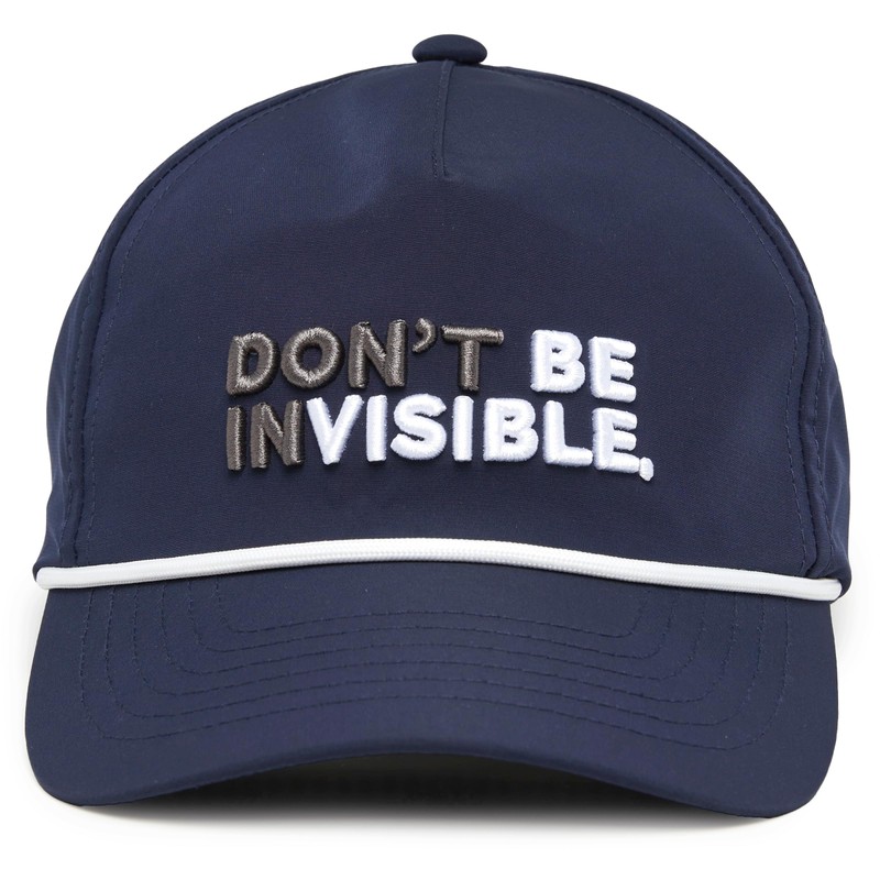 Funky Junque Performance Golf Rope Hat Mid-Crown Snapback Cap with Flexible Bill and Breathable Fabric - Don't Be Invisible - Navy Cap (White Rope)