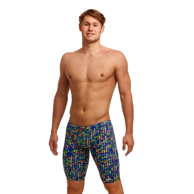 Funky Trunks Dial A Dot Jammer Men's Long Swimming Trunks, Chlorine-Resistant, Quick-Drying and Long Life