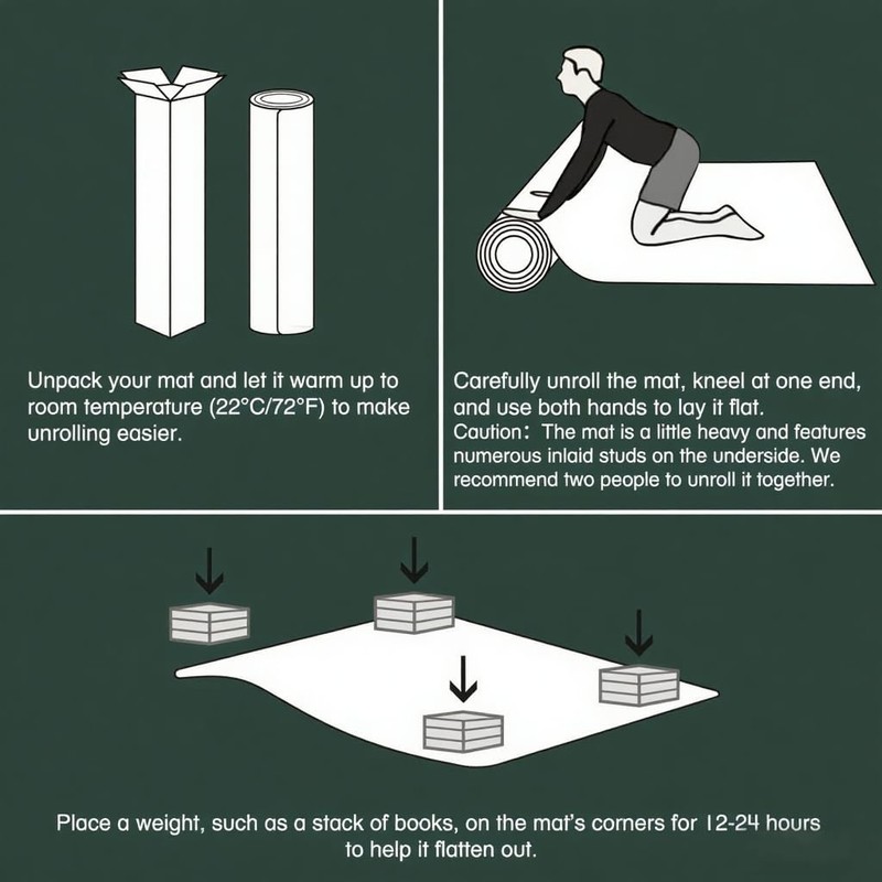 - HASSLE-FREE SUPPORT: For best results, refer to the instructions image —this chair mat arrives rolled and may take up to 72 hours to fully flatten. If it doesn’t meet your expectations, contact us—we're here to ensure you're happy with your purchase!