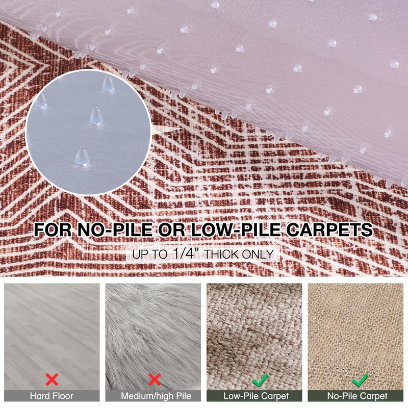 - ANTI-SLIP DESIGN: With 0.2" spikes, this chair mat stays firmly in place on low-pile carpets (up to 1/4" thick). This prevents slippage and shifting, ensuring safety—ideal for homes with children or the elderly. Please note: Only for low-pile carpets.