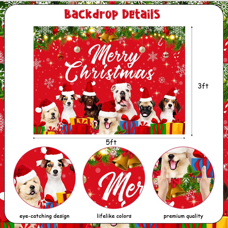 - Merry Christmas Backdrop Banner: The Christmas dog backdrop banner measures approx. 5(W) x 3(H) ft, providing ample space for your Christmas holiday party decorations and photography needs