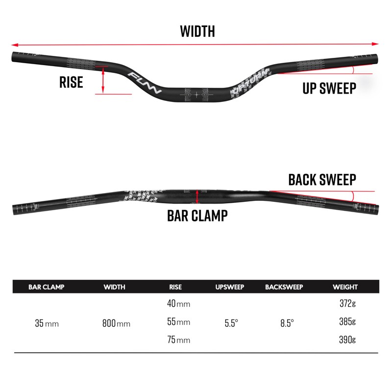 - Rise options: The Upturn, a 35 riser handlebar, is available in 55mm, 40mm and 75mm rise. Choose the rise that suits your preferred riding position and comfort level, ensuring an optimal fit for your biking needs.