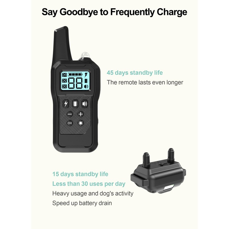 - 2600 ft Super Far Remote Range: 2600 ft (875 yards) remote range is easy to train your dog in both the park or backyard, never worry it runs too far. You can control each collar separately or together with the shock collars for dogs with remote