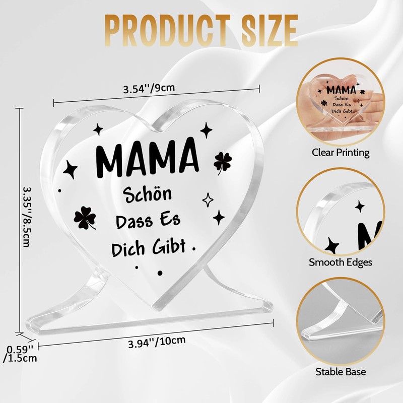 Funnli Gifts for Mum, Heart-Shaped Acrylic Decoration, Birthday Gift for Mum, Mother's Day Gifts, Gift Mother Wife for Easter, Mother's Day, Birthday, Christmas