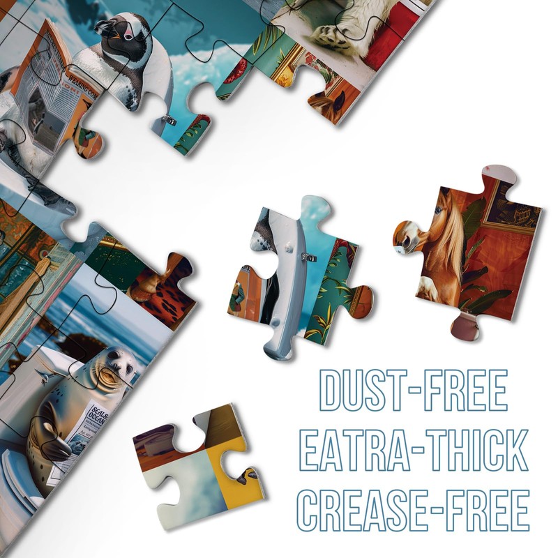 - Animals on Toilet - Get ready for a hilarious puzzle experience with our 'Animals on the Throne' jigsaw! These whimsical creatures are caught in the act of using the toilet while catching up on the latest news. With vivid colors and playful scenes, this puzzle is sure to bring laughter and fun to your game night. Add a quirky twist to your collection today