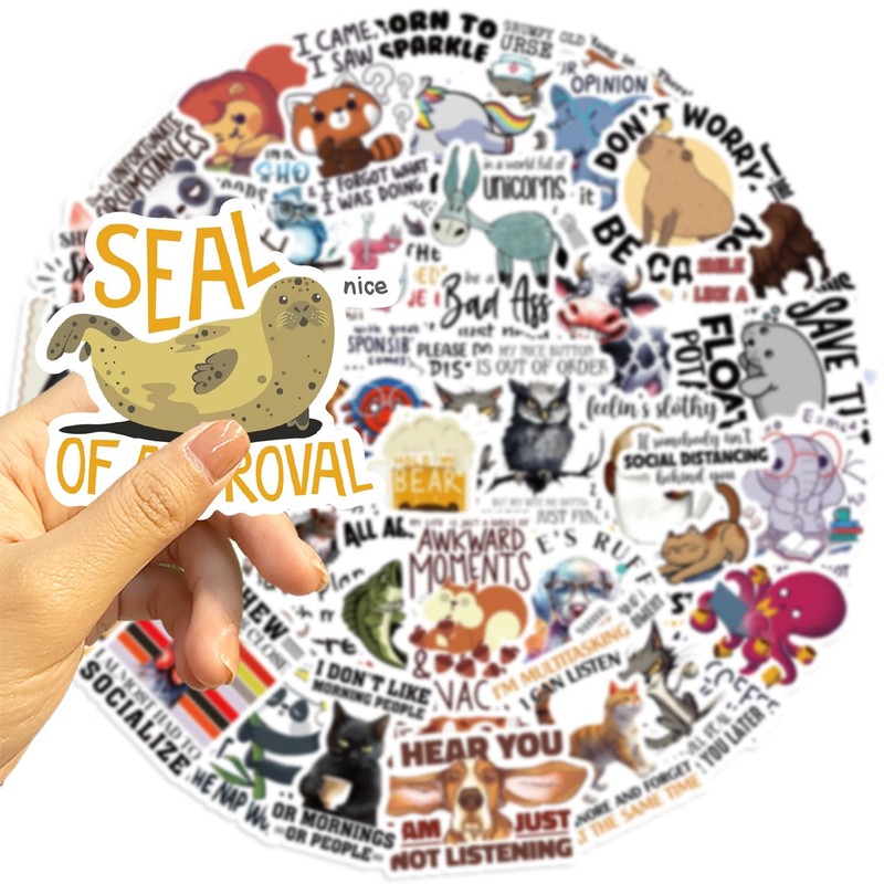 Funny Animal Stickers Funny Animals Sticker Set 50 Pieces Cute Decoration for Car Laptop Skateboard Bicycle Moped Motorcycle Bicycle Computer Suitable for Adults Children