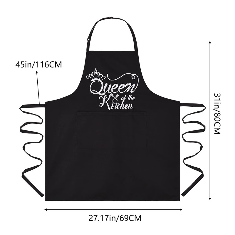 - ADJUSTABLE DESIGN - Adjustable neck strap with double buckle. Two long waist ties, which makes it suitable for anyone to wear. Two pockets in front of the apron, enough to put spice bottle, eggs, spatulas, cellphone, pens.